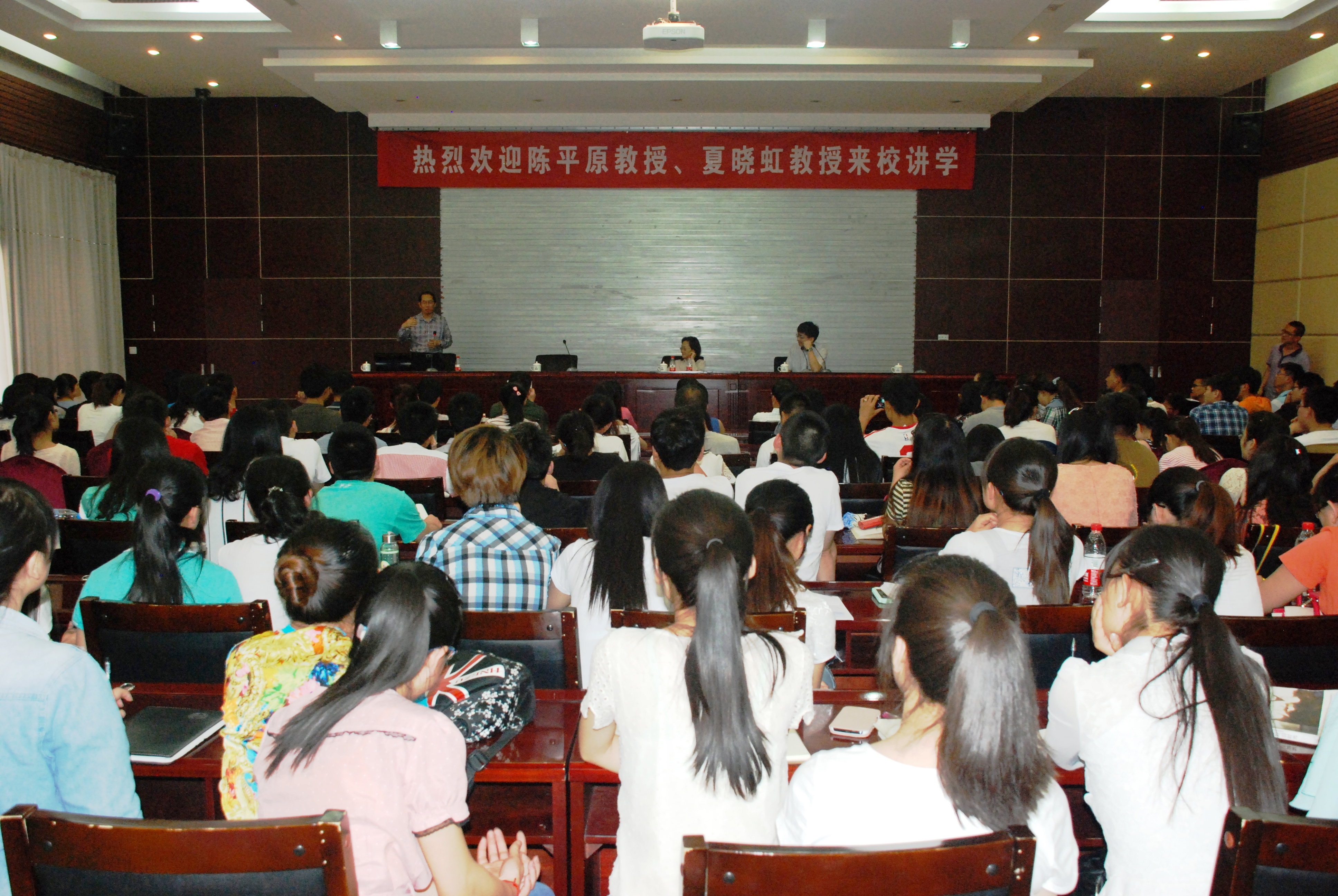 应我院邀请,著名学者、北京大学中文系陈平原教授、夏晓虹教授于6月11日来我校讲学。报告会于上午9时在专家楼会议报告厅举行,我院300余名师生聆听了两位学者的精彩报告。报告会由院长韩高年教授主持。