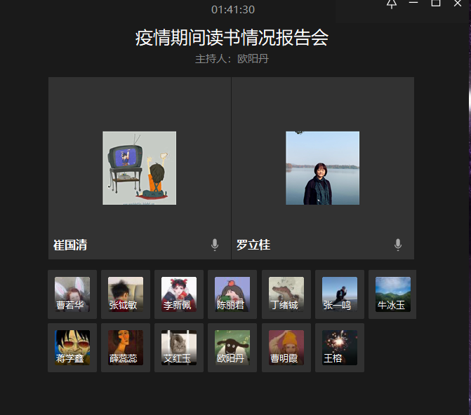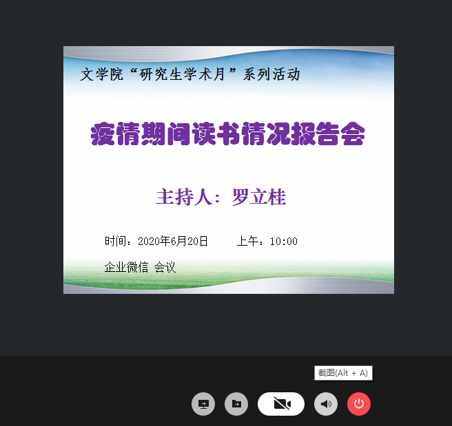 针对新冠疫情对正常教学工作的影响,遵照教育部“停课不停学”的精神和买球的app排行榜前十名推荐提出的“阅读经典,文学战‘疫’”的学习要求,文艺研究所各位导师为硕士生指定了阅读书目,要求同学们自觉自律,疫情期间在家认真读书。为了解学生们的专业阅读情况,6月20日上午十点,买球的app排行榜前十名推荐文艺学研究所主办的疫情期间读书情况报告会以线上会议的形式成功举办。读书会由罗立桂老师主持,崔国清老师以及本专业的10余名硕士生参加了此次会议。