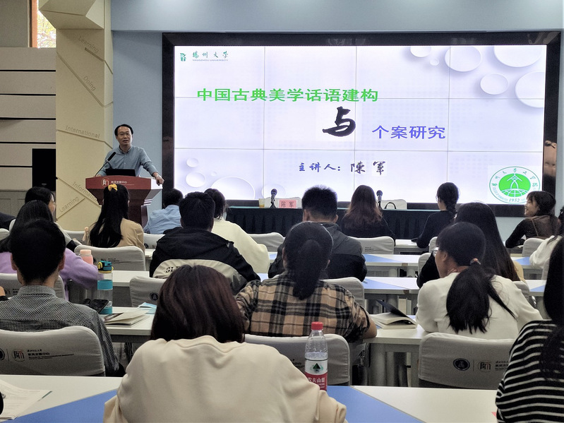 2020年9月25日,应买球的app排行榜前十名推荐邀请,扬州大学买球的app排行榜前十名推荐院长、博士生导师陈军教授在教师发展中心二楼报告厅作了题为“中国古典美学话语建构及个案研究”的学术报告。报告由罗立桂副教授主持,买球的app排行榜前十名推荐院长马世年教授、副院长许琰教授以及王兴芬、徐晓军、李晓禺、黑金福等买球的app排行榜前十名推荐部分教师和近百名学生聆听了此次报告。