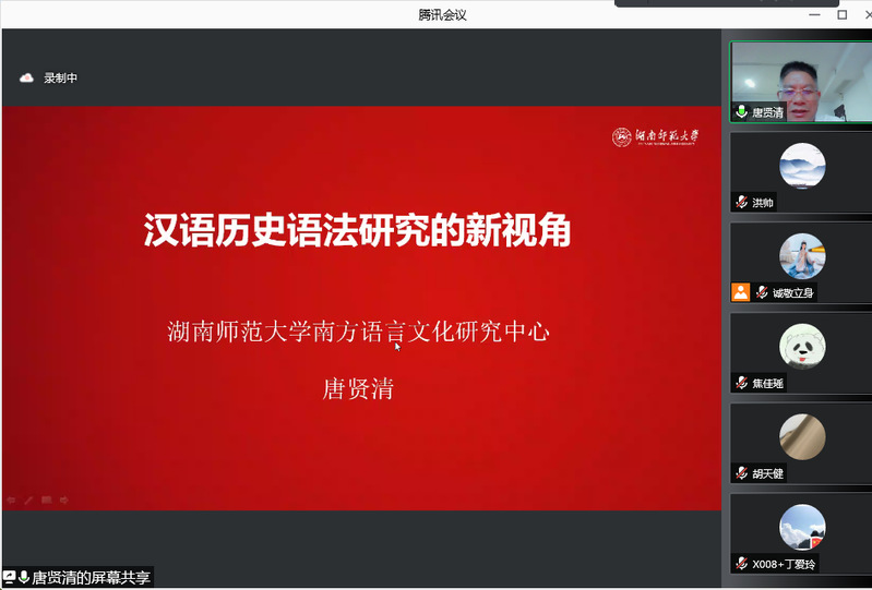 2021年7月24日晚,应买球的app排行榜前十名推荐邀请,湖南师范大学副校长唐贤清教授以视频方式作了题为《汉语语法研究的视角》的专题报告。报告会由洪帅副教授主持,买球的app排行榜前十名推荐部分师生及兄弟院校相关专业的研究生在线参加了此次报告会。