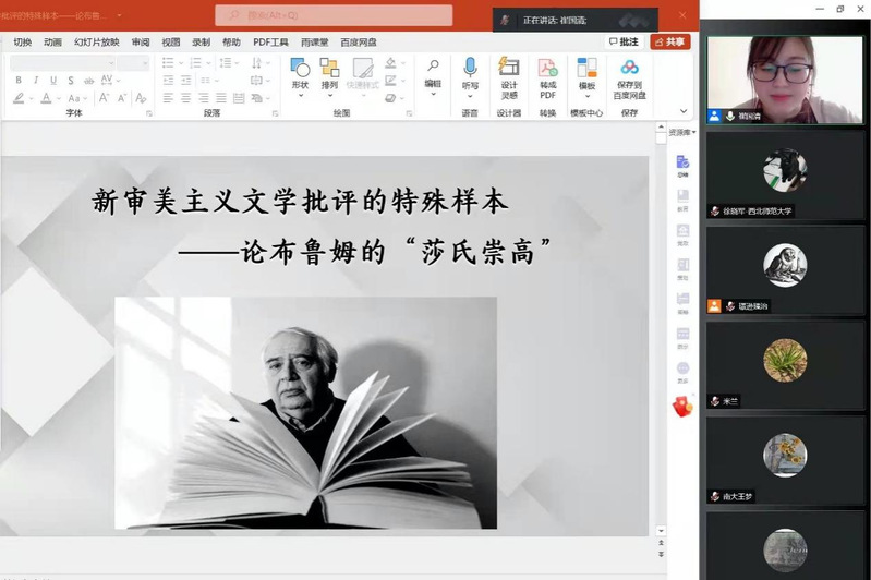第一期讲座由近三年新引进的青年博士为主要阵容推出,从四月13日开始,5月30日结束。第一讲为周忠强博士的《走近中古陇西李氏——以姑臧房变迁为例》,第二讲为崔国清博士的《新审美主义文学批评的特殊样本——论布鲁姆的“莎氏崇高”》,第三讲为伏雪芹博士的《汉代刺客画像及其图文关系研究》,第四讲为马晓舟博士《<汉籍解题>及其中国知识体系的建构》,第五讲为宋登安博士、王梦琪博士、慕江伟博士《中国现当代文学史料的整理与研究》,第六讲为张安博士的《“涂之人可以为禹”——疫情背景下对〈荀子〉言说思想的再认识》,第七讲为朱生银博士、刘志刚博士的《新文科视域下的语言学研究》,第八讲为任立博士的《<广韵>字词札记》,第九讲为刘阳杰博士的《高阳又灵,西垂有声——早期秦文化探源》,第十讲为黑金福博士的《世情小说<金瓶梅>在当下的镜鉴作用》。第一期系列讲座内容充实,研究方法独特,研究视角新颖;新进博士与师生们进行了深入广泛的交流,在同学们中引起了良好的反响。充分体现了我院引进人才的学术水平,彰显了我院青年教师培养的质量和人才贮备的厚度,他们必将成为我院发展的中坚力量。
