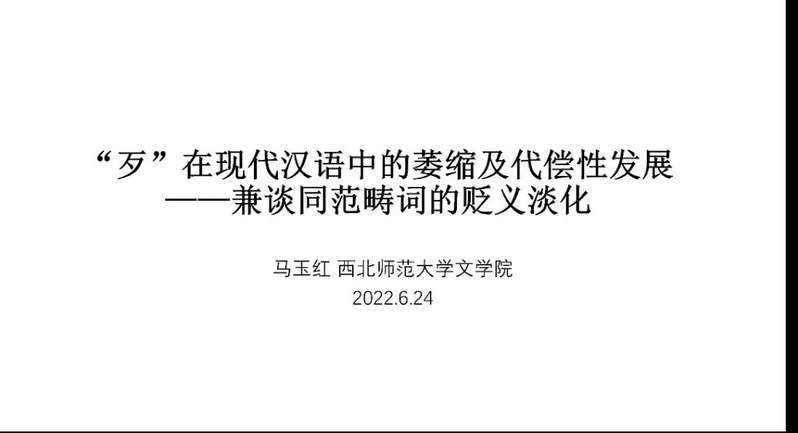 2022年6月24日下午,买球的app排行榜前十名推荐马玉红副教授为我院师生作了题为《“歹”在现代汉语中的萎缩及代偿性发展——兼谈同范畴词的贬义淡化》的线上学术报告。报告由洪帅副教授主持。