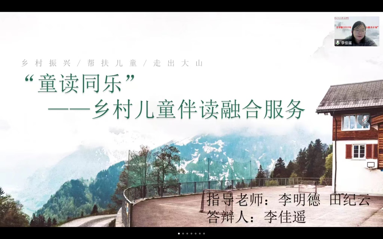 | 7 | 童读同乐——乡村儿童伴读融合服务 | 李佳瑶 | 校级竞赛夺金种子项目 | |