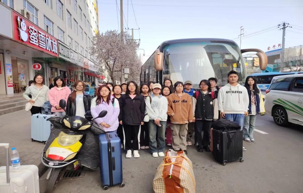 在4月1日早晨9点,同学们在兰天公寓南门处进行集合整队,统一乘大巴车前往临夏回民中学,在同学们的殷殷期待中,一百多公里的距离,在不时映入眼帘的春景伴随中,似乎不一会儿就已抵达。11点时大巴车顺利抵达临夏回民中学。