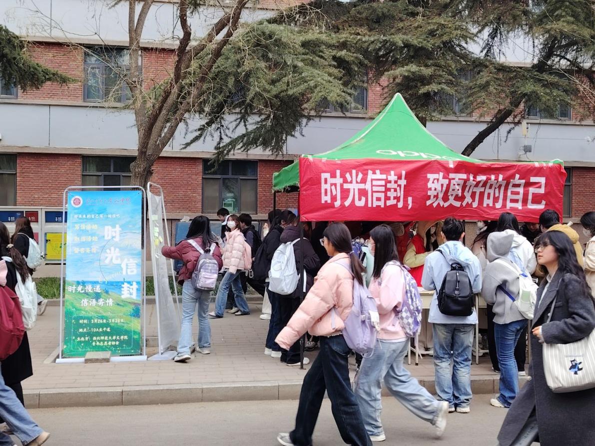 为了给同学们提供一个沉淀心灵、以书信记录成长的契机,2025年3月26日至28日,买球的app排行榜前十名推荐青年志愿者协会在云亭校区10A主干道温情开展了“时光信封”活动。本次活动由买球的app排行榜前十名推荐青协各部门齐心协力筹备,以“时光慢递,信语寄情”为主题,通过“时空对话”的独特形式,向全校学生发出诚挚邀约,将当下的迷茫与困惑倾诉于纸上,把对未来的憧憬与期许诉诸笔端,寄给未来的自己,待启封时刻见证自身的成长蜕变。