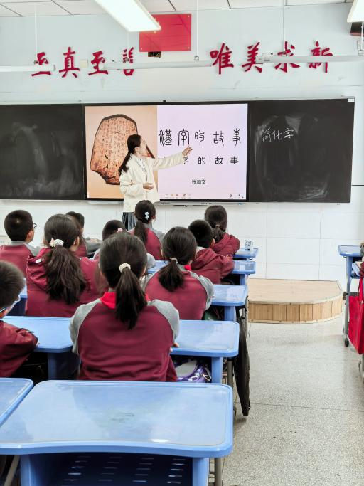 2025年4月23日是第30个世界读书日。我院2022级汉语言文字学博士研究生应邀在全国文明校园之一的兰州东郊学校讲授《汉字的故事》公开课。授课对象为小学部六年级师生。授课内容主要围绕先有语言还是先有文字、汉字是如何产生的、汉字是如何发展的三个方面展开。